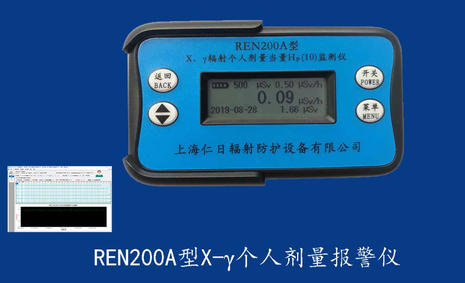 • REN200 個(gè)人輻射監(jiān)測(cè)儀 REN200型X、γ個(gè)人劑量報(bào)警儀(又叫X、γ輻射個(gè)人劑量當(dāng)量HP(10)監(jiān)測(cè)儀)內(nèi)置高靈敏度蓋格計(jì)數(shù)管為探測(cè)器,主要用來(lái)監(jiān)測(cè)各種放射性工作場(chǎng)所的X、γ以及硬β射線的輻射,具有響應(yīng)快,測(cè)量范圍寬的特點(diǎn)。能顯示工作場(chǎng)所的劑量當(dāng)量率和累積劑量,更換電池時(shí),日期及累積數(shù)據(jù)能永久保存。可選配RenRiPersonal個(gè)人劑量管理軟件,該軟件可存儲(chǔ)多個(gè)人的歷史數(shù)據(jù),能記錄日累積、月累積、年累積、輻照時(shí)長(zhǎng)、計(jì)算平均劑量率、扣除或不扣除本底輻射,且以文字和圖譜的方式展現(xiàn)數(shù)據(jù)。廣泛應(yīng)用于核電站、加速器、鋼鐵、化工、同位素應(yīng)用、醫(yī)院、工業(yè)X、γ無(wú)損探傷、放射醫(yī)療、鈷源治療、γ輻照、放射性實(shí)驗(yàn)室、核設(shè)施周?chē)h(huán)境監(jiān)測(cè)